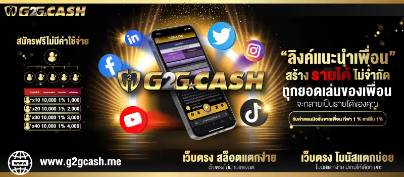 สมัครสมาชิกวันนี้ผ่านทาง g2g-cash.com แล้วสัมผัสประสบการณ์การเดิมพันที่แตกต่างไปกับเรา!